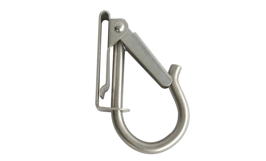 Verktøykrok for belte. Passer belter som er inntil 50mm bredt. Verktøykrok for å henge fra seg verktøy i beltet. Denne verktøykroken er produsert med kort stuss foran låseleppe for å gjøre det lettere å hekte ut verktøy. Verktøykroken må trees inn på beltet. Passer sammen med løse beltefester R5001 eller R5002. Produsert i rustfritt stål.