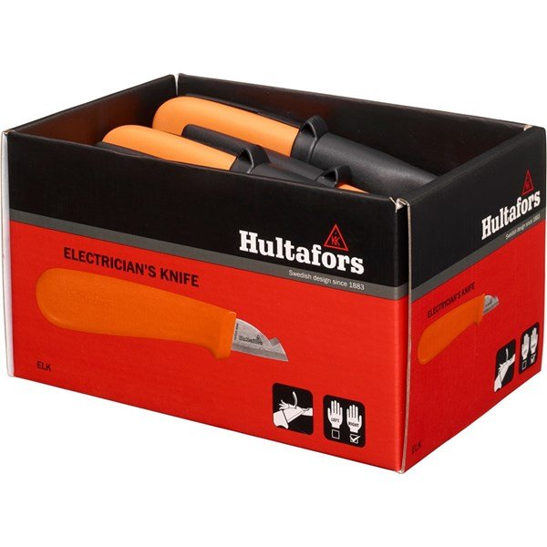 Kniv der eggenes slipning og skaftets utførelse er optimal for avisolering av kabel. Unik funksjon gjør at sliren ikke løsner fra knappen på buksene, samtidig med at den er lett å ta bort. Knivblad av japansk knivstål, 1,5 mm kullstål herdet til 58–60 HRC