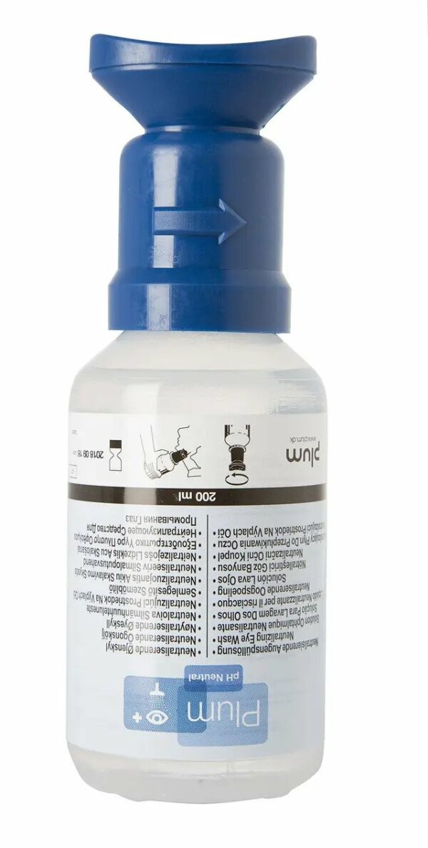 pH neutral er en 2 minutters øyeskylleløsning til ulykker med syrer og baser Ergonomisk øyekopp og den gir en myk og jevn stråle CE-merket